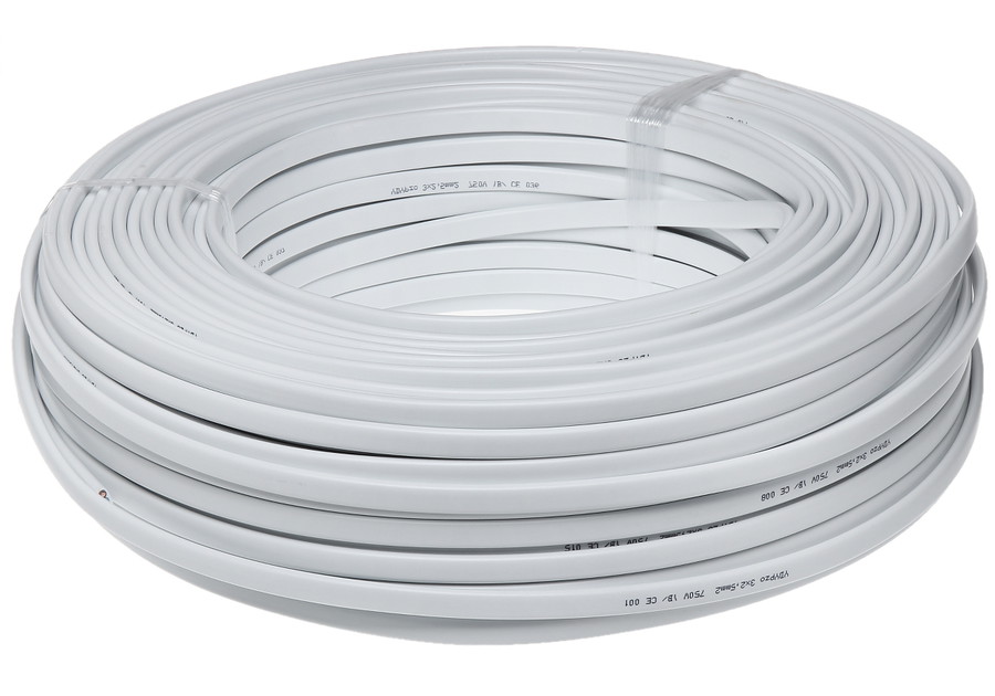 Przewód elektroenergetyczny do układania na stałe, w pomieszczeniach suchych i wilgotnych na tynku i pod tynkiem, z żyłami miedzianymi jednodrutowymi, o izolacji i powłoce polwinitowej, płaskie.